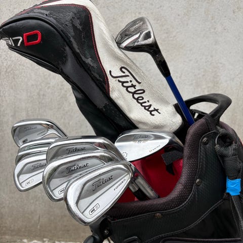 Selger et komplett golfsett med tydelig vintage/retro preg fra en ikonisk periode i golfutstyr (tidlig 2000-tall).