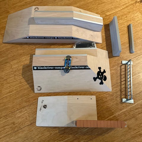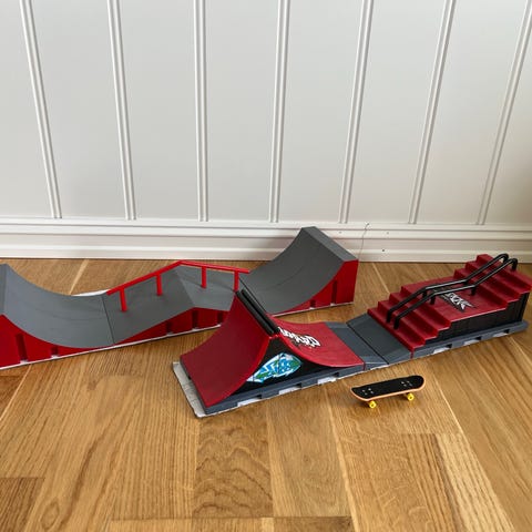 Fingerboard og ramper selges da dem ikke blir brukt. Har stått mest til pynt. Noen fingerboard er ny og ikke montert, mens andre er mer brukt/byttet med venner. Følger med sykkel. Denne har knekt ratt og pedal. Følger med litt ekstra utstyr til sykkelen, så har derfor valgt å beholde den sammen med det andre.