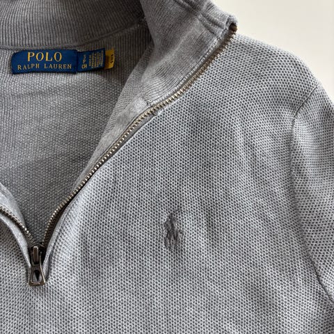 Ralph Lauren Polo genser for herre i størrelse S og XS. Lyse blå er XS og vanlig blå er str S. Genserene er blå og laget av bomull. Den har høy hals med glidelås i front og ribbestrikkede kanter. Klassisk brodert Polo-logo på brystet. Passer til hverdagsbruk og kan kombineres med både jeans og chinos.