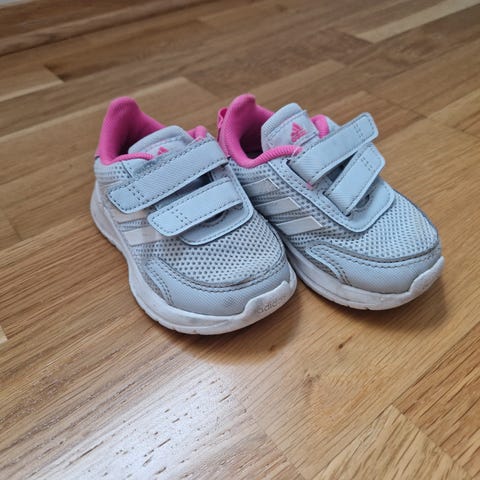 Adidas barnesko i størrelse 20 for unisex. Skoene er hvite med karakteristiske striper på siden og har borrelåslukking over vristen for enkel av- og påtaking. Modellen passer til hverdagsbruk og kan brukes både inne og ute, avhengig av behov og værforhold. Sålen er flat og gir stabilitet for små føtter.