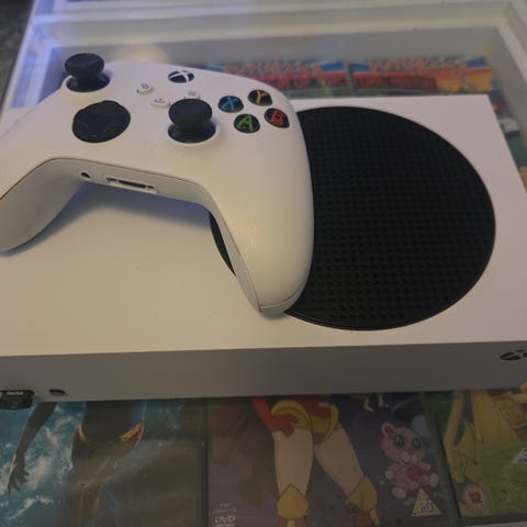 Xbox Series S konsoll hvit med en kontroller og strømkabel. Kun testet et par ganger. Fabrikkinnstillt. Som ny.