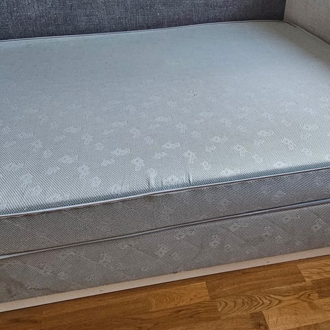 Fin seng 200x150cm i lakkert tre. Pent brukt, uten skader.