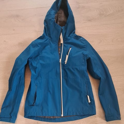 Blå McKinley ytterjakke, str. 152 (12 år). To glidelåslommer, borrelåsstramming på ermane, stramming i livet, avtakbar hette, meshfôr. Jakka kan ha godt av ein impregneringsvask. Fint brukt, i god stand.