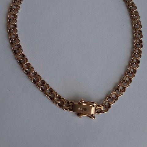 Har vært inne til gullsmed for sjekk og reparasjon av svakheter da dette er ett armbånd arvet etter min farmor. Alt er i orden, ingen slitasjer eller skader.