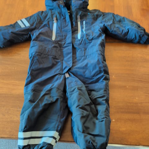 Didriksons parkdress for barn i størrelse 110. Dressen er i mørk blå farge med forsterkede partier på knær og sete. Den har hette, refleksdetaljer og flere lommer foran. Egner seg til bruk i barnehage og utelek i kjøligere og vått vær.