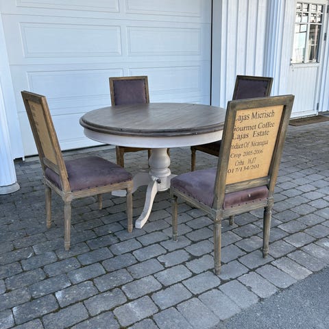 Flott spisebord selges! Praktisk ileggsplate som oppbevares under bordplaten. Ingen tydelige bruksmerker.