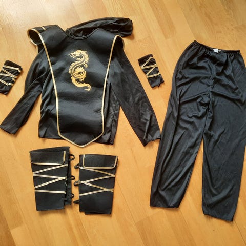 Kostyme gis bort ved henting. Størrelse 140. Overdel, underdel og en maske også lagd av tekstil.