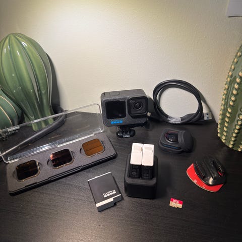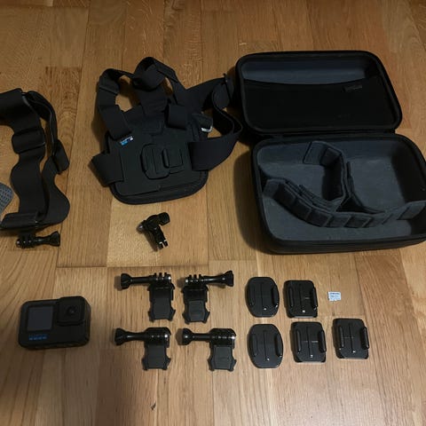 GoPro 12 actionkamera med 2 stk. enduro batteri med dobbel lader, Mediamod med lys