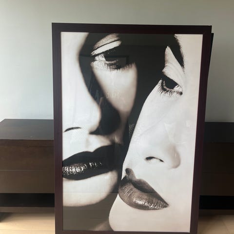 Bildeplakat av en fotografi med motiv av et par som står på en takterrasse med utsikt over Havanna by, Cuba. Bildet er innrammet med enkel, mørk ramme. Motiv i varme fargetoner med arkitektur og bygninger i bakgrunnen. Passer som veggbilde i stue, soverom eller gang.