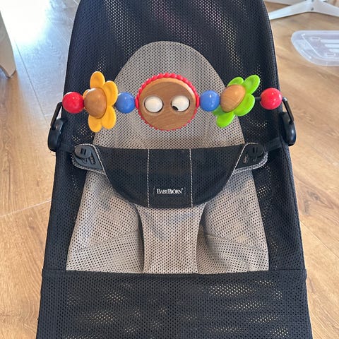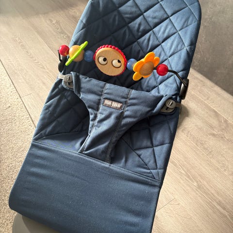 Godt, men pent brukt vippestol, med noe solbleket stoff -ellers i tipptopp stand. Selges med leke som hører til. Nyvasket trekk.