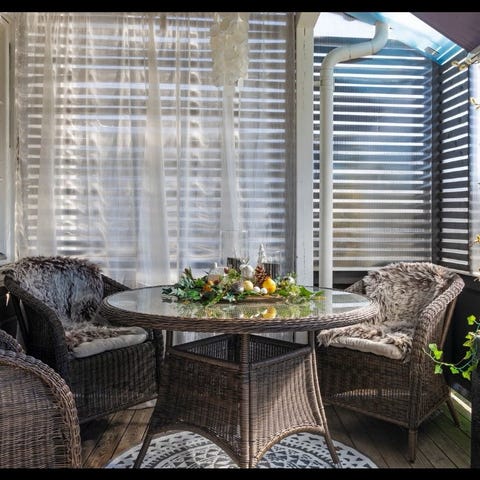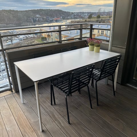 Møbler har stått innomhus i hagestuen.