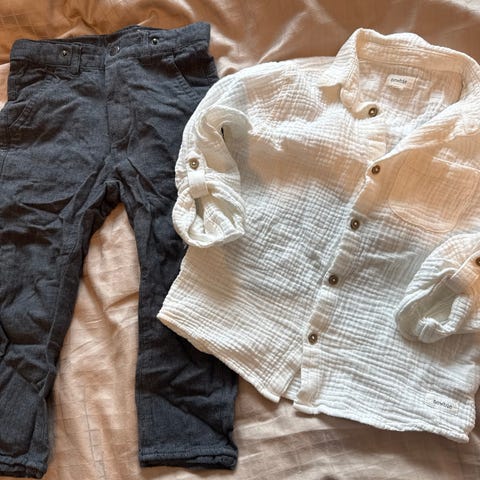 H&M pysjsett for gutt i størrelse 98. Settene består av langermet overdel og lange bukser i bomull. Flerfargede bukser med rutete og mønstret design, kombinert med ensfargede overdeler. Egnet som nattøy eller koseklær hjemme.