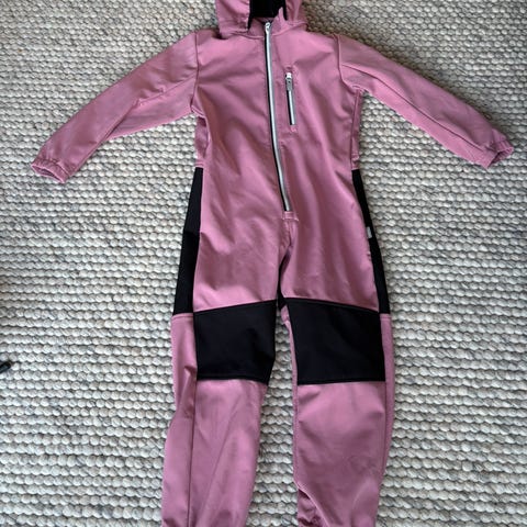 Ene gummistrikken ved foten mangler-se bilde, denne får man kjøpt i butikk. Nyvasket, ikke slitasje i sømmer, armer eller ben. Noe misfarging på det rosa stoffet etter utelek som ikke går bort i vask. Se bilder.