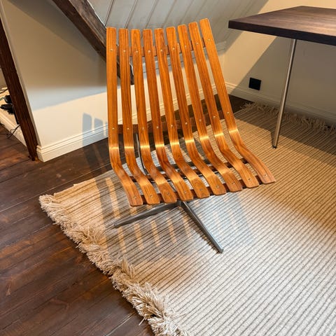 Selger en Fjordfiesta Scandia Nett stol. Metall understell. Stolen er pent brukt, ingen synlige skader.