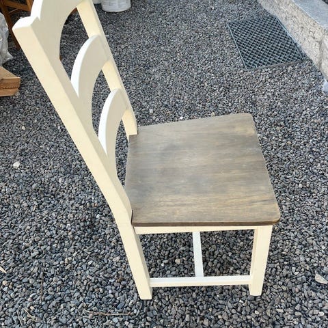 Spisestue selges, bord med tilleggsplate og 6 stoler. Er brukt og har bruksmerker.