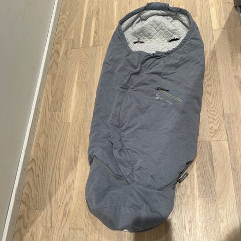 Easygrow vognpose vår/høst. I en grå-blå farge. Kan bli lenger ved å åpne glidelåsen nederst. Passer derfor ofte gjennom hele vognperioden.