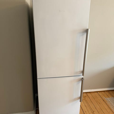 Modellen er Gram KF 30202G. Kjøleskapet har en høyde på 185 cm, bredde på 60 cm og dybde på 64 cm. Må hentes tirsdag 24.03 eller onsdag 25. Dere må være to til å bære.