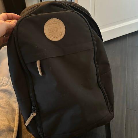 Denne sekken er brukt som skolesekk og har noen få bruksmerker. De er ikke veldig synlige, men man kan se det litt på glidelåsen og på stroppene. Den rommer rundt 20-25L. I butikkene selges sekken for 1099,- og pennalet for 199,-