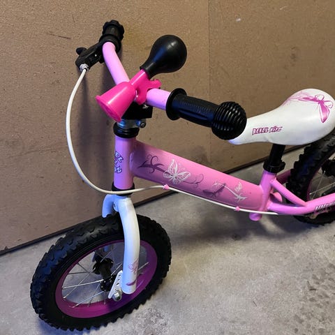 Pent brukt balansesykkel selges for 500kr stk, hjelm selges for 200kr stk. Har to like sykler + hjelmer (tvillinger). Passer perfekt fra ca 2-4 år.