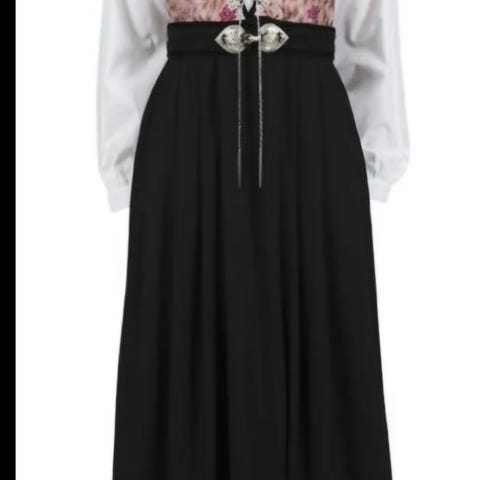 Belte med flotte sølvfarget hekter. Festdrakten er i god utførelse og kvalitet og behagelig på. Et godt alternativ til bunad.