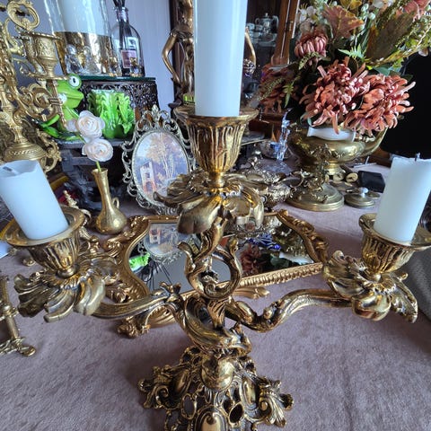 • Type: Dobbeltarmet lysestake med et sentralt håndtak.
