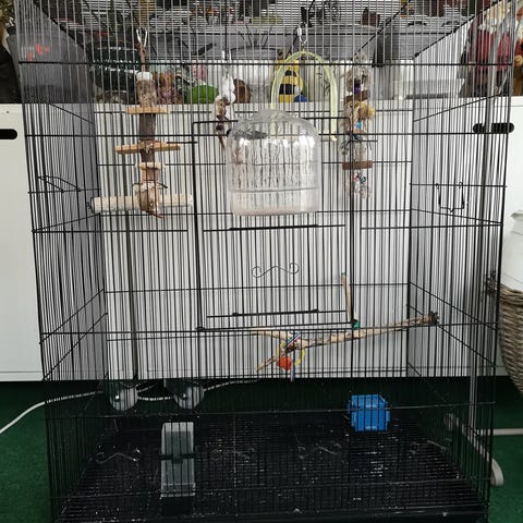 Hovedburet: TIAKI Liten bur villa, 2 plattformer, 3 stiger, 1 napp, 1 drikkevann