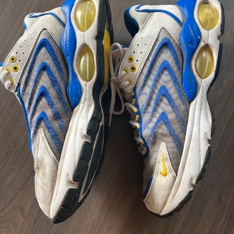 «Kul fritidssko inspirert av 80-tallet og basketball. Overdel av resirkulerte materialer og syntetisk skinn som gir god støtte og passform. Swoosh-design på siden.