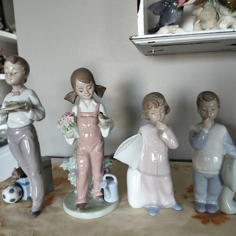En gutt og en jente med pysj og pute. Koselig på barnerom. Pris pr stk.. spansk porselen. Ca 14 cm høye. Hele og fine. Tvillinger? Gutt og jente. Har flere annonser. Kan hentes eller sendes.