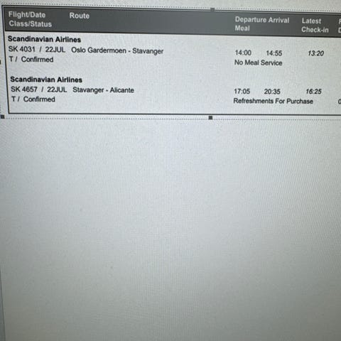 Gardermoen-Alicante 18/6 inkl bagasje