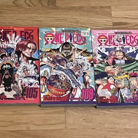 One Piece manga bøker norsk utgave vol. 4, 5 og 7
