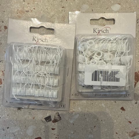 Selger en pakke med 10 stk 2- fingerkrok fra Kirsch. Disse er 5.5 cm lange og 2.5 cm på det bredeste. Disse er lave og passer utmerket til gardinskinner. Pakken er åpnet, men krokene er ubrukte da jeg ikke trengte de likevel. Sendes mot porto eller hentes i Solbergelva. Se gjerne mine andre annonser for kombinert frakt.