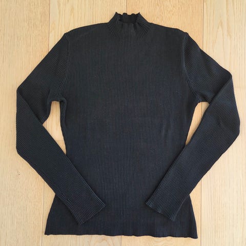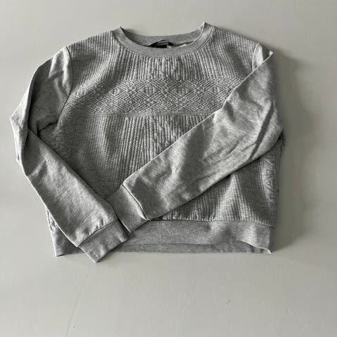 H&M genser for dame i størrelse S. Genseren er svart og laget av bomull. Modellen har lange ermer og rund hals. Passer til hverdagsbruk alene eller under andre plagg.