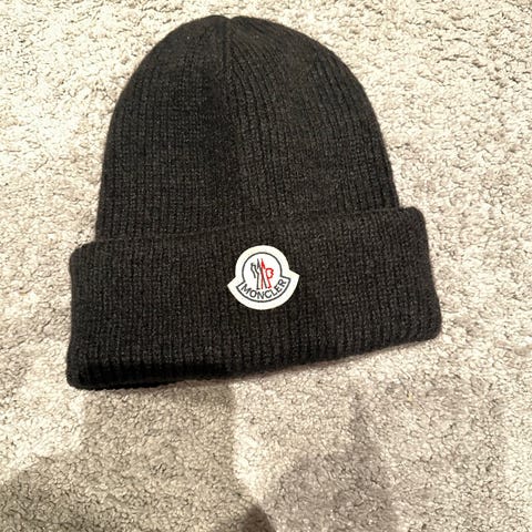 Selger en strøken Moncler Lue i sort . Nesten Helt ny rett fra butikk . Bare og ta kontakt ved fler bilder eller spørsmål.😊