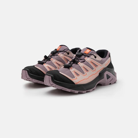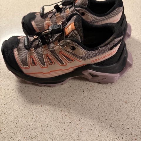 Salomon joggesko i størrelse 38 for unisex. Skoene har overdel i tekstil og syntetisk materiale, med forsterkninger i front og hæl. De har hurtigsnøring og kraftig yttersåle med godt mønster som gir grep på ulike underlag. Fargekombinasjon i rosa, lilla og svart. Egnet til hverdagsbruk, tur og lett trening for barn eller ungdom som bruker størrelse 38.