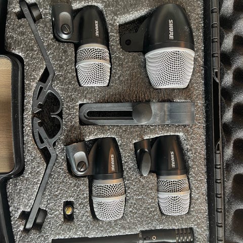 CAD Pro Series trommemikrofonsett med koffert. Settet inneholder flere dynamiske mikrofoner tilpasset trommesett, blant annet for skarptromme, tammer og basstromme. Mikrofonene leveres i en spesialtilpasset koffert med plass til hver enkelt mikrofon og fester. Kofferten gir beskyttelse under lagring og transport, og gjør det enkelt å holde oversikt over hele settet. Innhold: 1 stk GAD KM 212, 3 stk GAD TM 211, 1 stk GAD SN 210, 2 stk GAD CM 217, alle med fester. 1 stk koffert. Settet er ubrukt - guttungen fant ut at han ikke ville bli lydtekniker likevel…… Gi gjerne bud.