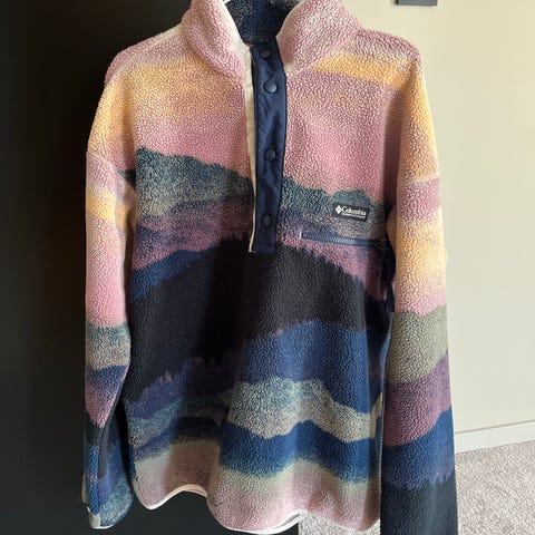 Denne fremstår som ny og er ikke brukt 5 ganger engang, det er en veldig behagelig fleecegenser.
