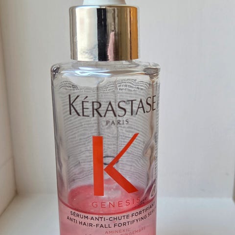 Kérastase Genesis hårserum. Serumet kommer i en flaske med pipetteapplikator og er beregnet for bruk i hodebunnen. Produktet tilhører Genesis-serien fra Kérastase, som er utviklet for hårpleie og hodebunnspleie. Egnet for påføring direkte på hodebunnen i forbindelse med hårvask eller som del av en daglig hårpleierutine.