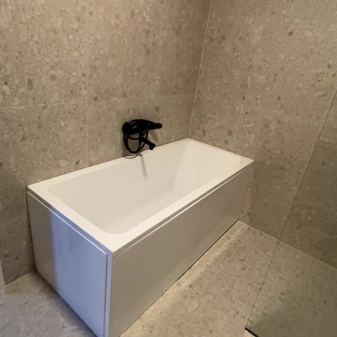 Badekar 160x70 cm med panel og blandebatteri