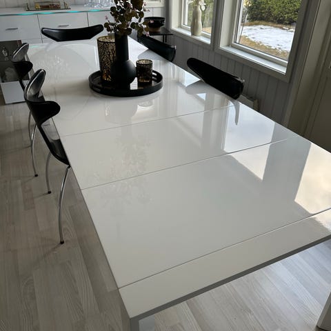 Pent brukt spisebord med 2 ekstra klaffer. Må hentes. Lengde med klaffer er 280cm.