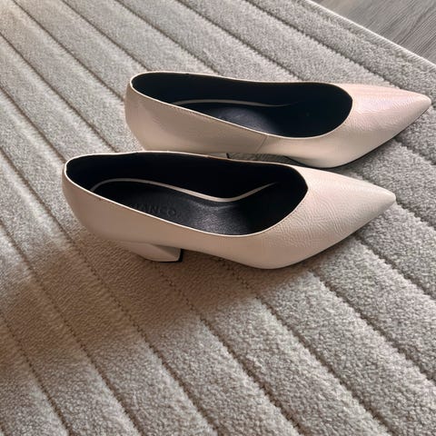 Stilige hvite pumps med krokodillemønster som passer til mange anledninger. De er behagelige og i god stand, perfekt for både jobb og fest.
