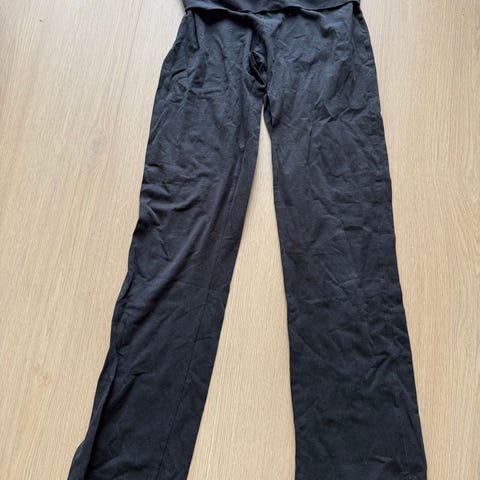 NA-KD bukse for dame i størrelse S. Buksen er svart og laget i merinoull. Den har elastisk linning i livet og lange ben. Egner seg godt til hverdagsbruk og som en behagelig og varm bukse i kjøligere vær.