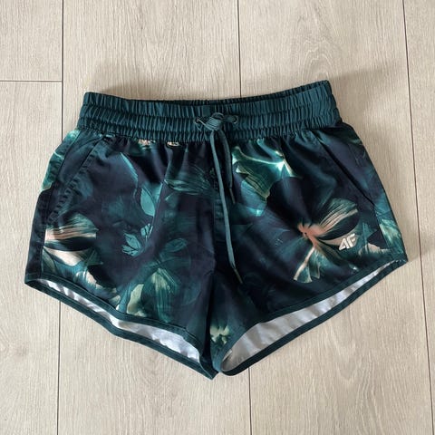 Løpeshorts for herre i størrelse S. Shortsen er i en lys grønn farge og laget i et lett, teknisk materiale egnet for løping. Den har strikk og snøring i livet for justerbar passform, samt sidelommer. Det er perforerte felt i sidene for bedre ventilasjon. Egnet til løping og annen trening utendørs og innendørs.