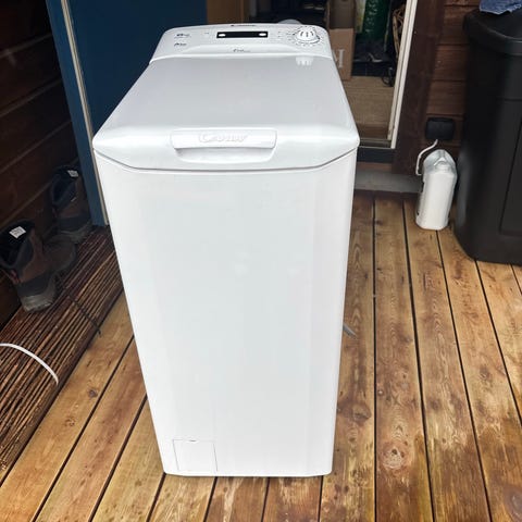 Hoover toppmatet vaskemaskin i hvit utførelse. Maskinen har toppåpning med innvendig trommel som lastes fra toppen. Betjeningspanelet har dreiebryter og display med flere vaskeprogrammer. Energimerking A+++. Egnet for plassering der det er begrenset gulvplass, siden den er smalere enn en frontmatet maskin. Passer til vanlig klesvask i husholdning. Nødvendige tilkoblingsslanger følger med, slik det vises på bildene.