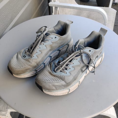 Okaki joggesko i størrelse 42. Lite brukt, mye sko igjen, men trenger en vask. Husker ikke nypris nøyaktig, men var over tusenlappen