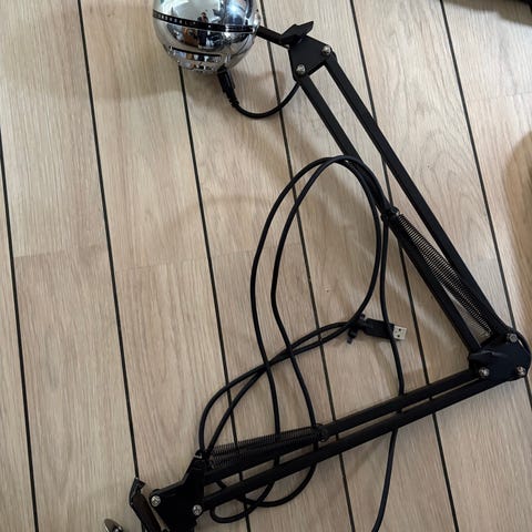 Original bordstand og usb kabel som kom med mikrofonen følger med.