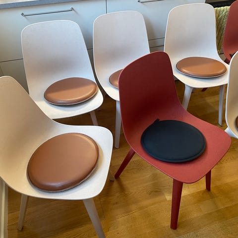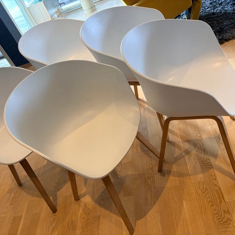 Selger 8 stk. originale Fritz Hansen Dråpen 3110, designet av Arne Jacobsen. Stolene er svært pene og fremstår som godt holdt. Alle stolene selges med originale sitteputer.