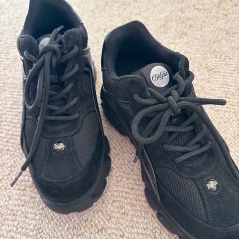 Pene Buffalo sneakers/joggesko i størrelse 37. Modellen har høy platåsåle, snøring og borrelås over vristen for ekstra støtte.