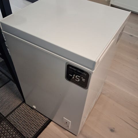 Whirlpool fryseboks i hvit. Fungerer fint. Stått inne hele tiden. Ca 100 liter.