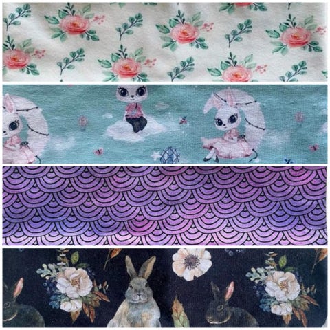 Med regnbue, kaniner, katter, blomster og sommerfugler.