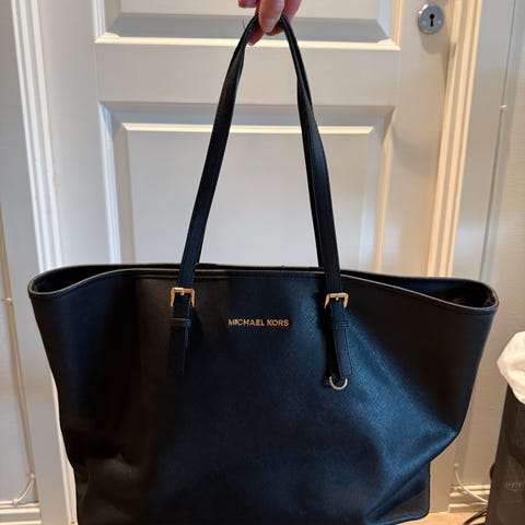 Michael Kors håndveske i svart farge. Vesken har to bærehåndtak og avtakbar, justerbar skulderrem med metallspenner. Innvendig har den hovedrom med glidelåslukking, samt en mindre lomme for organisering. Passer som hverdagsveske eller til jobb, med plass til personlige eiendeler som lommebok, mobil og småting.